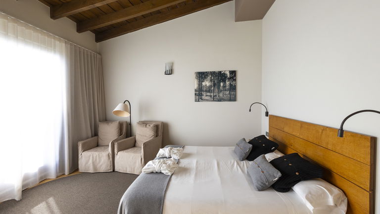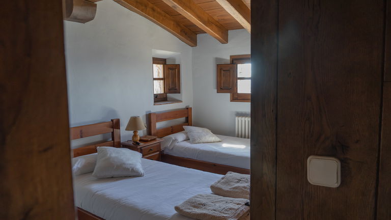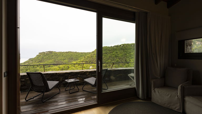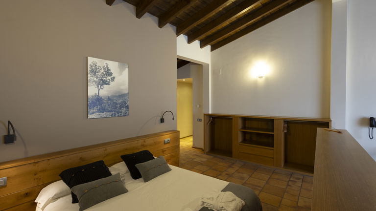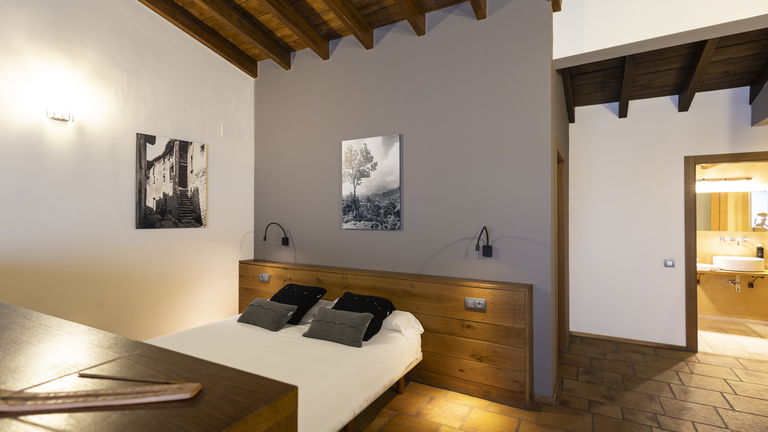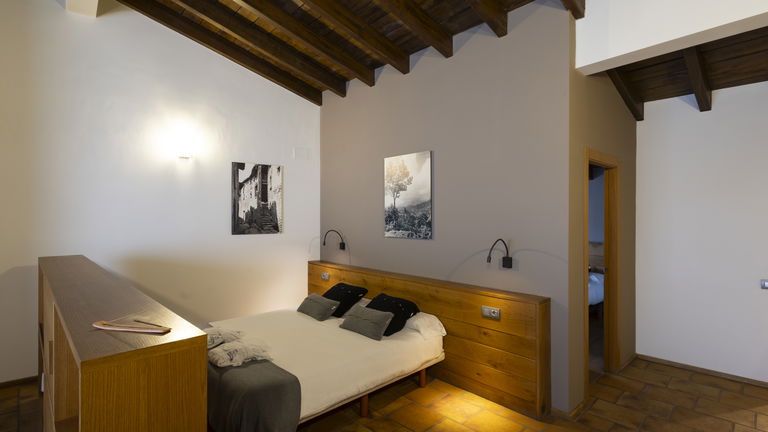 El Roure és l'habitació familiar. Consisteix en dues habitacions dobles connectades: habitació principal i habitació secundària, que comparteixen bany. El Roure està pensada per a una família de fins a 4 persones. Té parquet de roure natural, TV, bany amb terra de pedra natural (banyera) i balcó amb vistes increïbles.