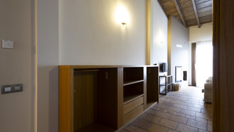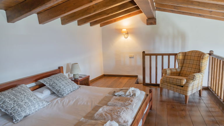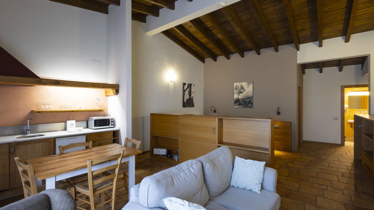 La planta baixa consta duna habitació doble oberta a saló-menjador, cuina i sortida a terrassa privada. Hi ha un bany amb dutxa i possibilitat d'afegir un llit supletori individual (pensat per a un nen/a). A la primera planta hi trobem l'habitació doble amb bany privat (banyera) i balcó amb vistes increïbles.