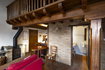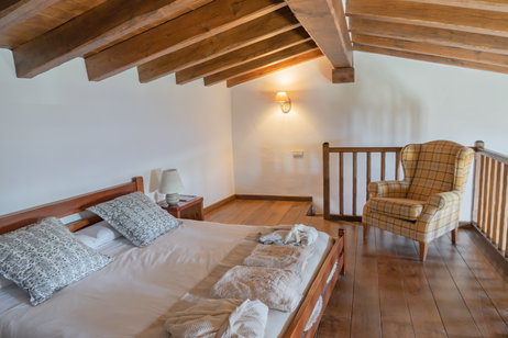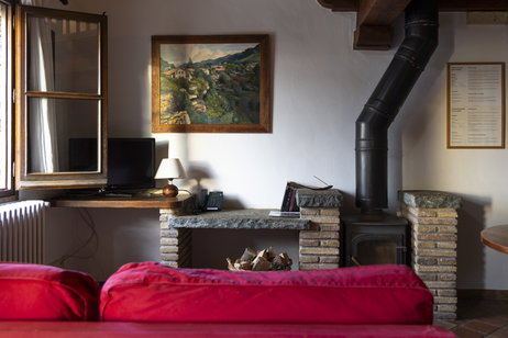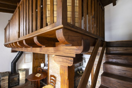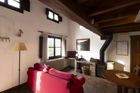 La caseta Sacalm és per a una parella. Té un dormitori situat en un altell obert de fusta. Un espai obert amb cuina, menjador amb estufa de llenya i bany amb dutxa.