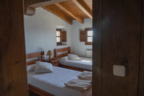 Caseta amb 2 dormitoris: un llit doble i 2 llits individuals. L'habitació de llits individuals és oberta.